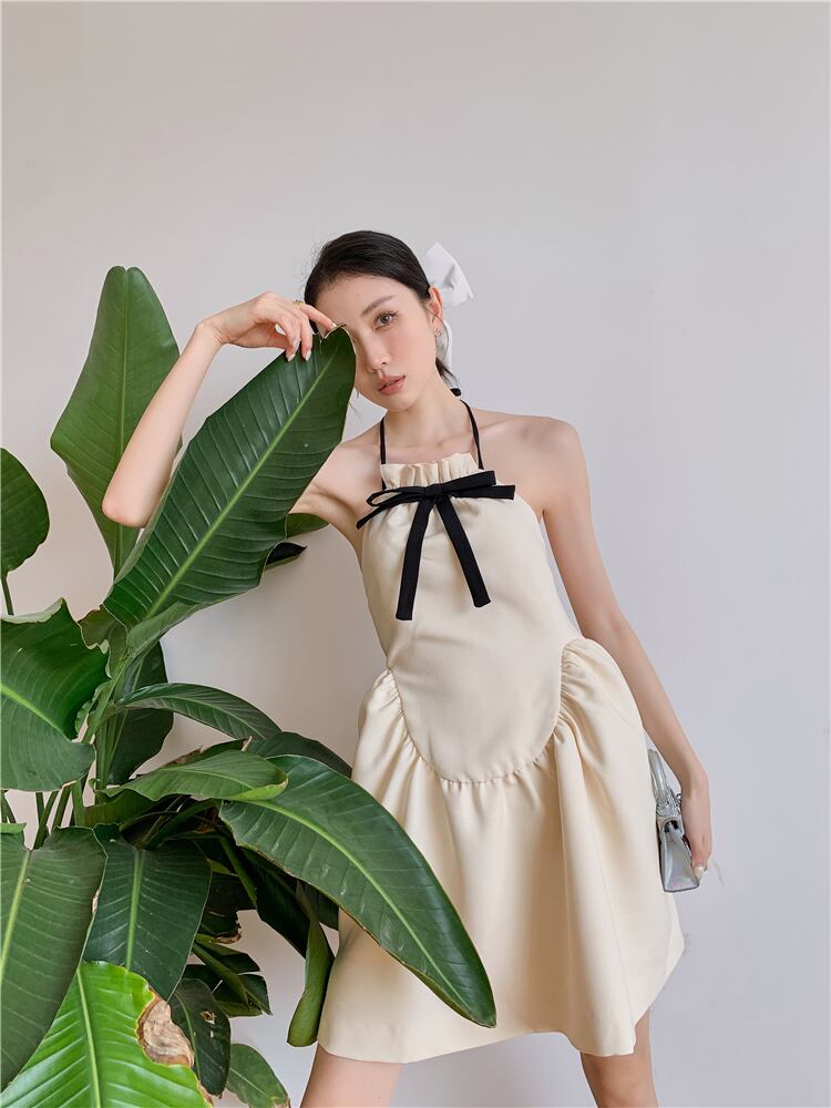 スプリング夏服リボンホルタースカート スタイルバックレスワンピース 大人ガーリー スウィート キュート カジュアル 春物 夏物 パニエ ペチコート GroundMODE231661466536 | pleglad Ground