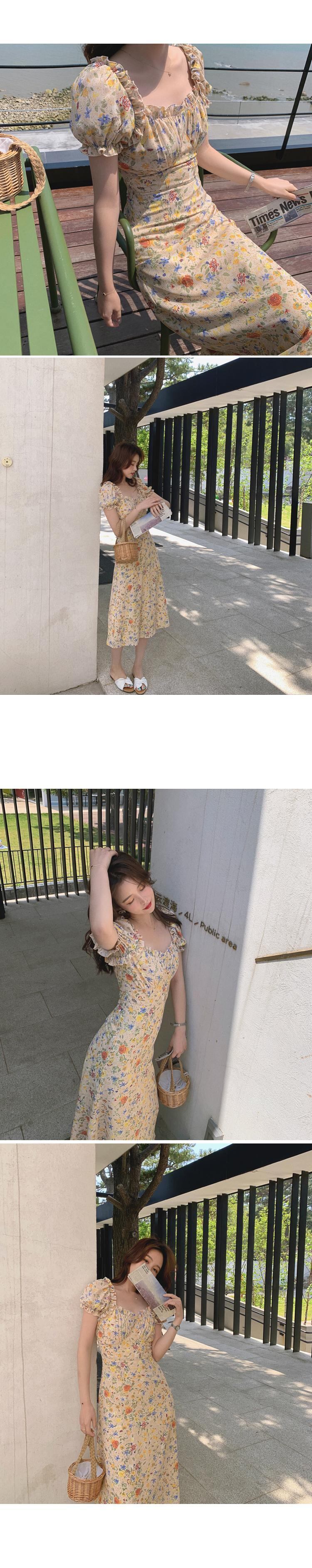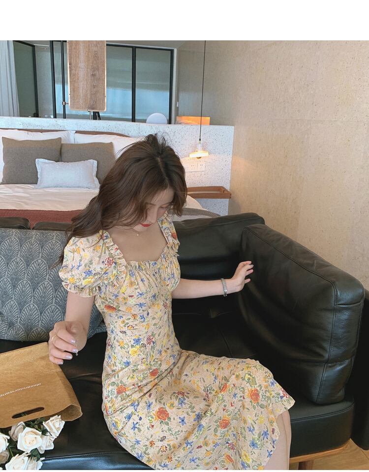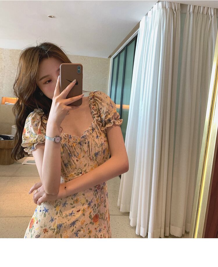 夏服プリントワンピースフローラルミディスカート レディース 大人ガーリー スウィート キュート カジュアル 夏物 花柄 フラワーデザイン パフスリーブ GroundMODE227195459872 | pleglad Ground
