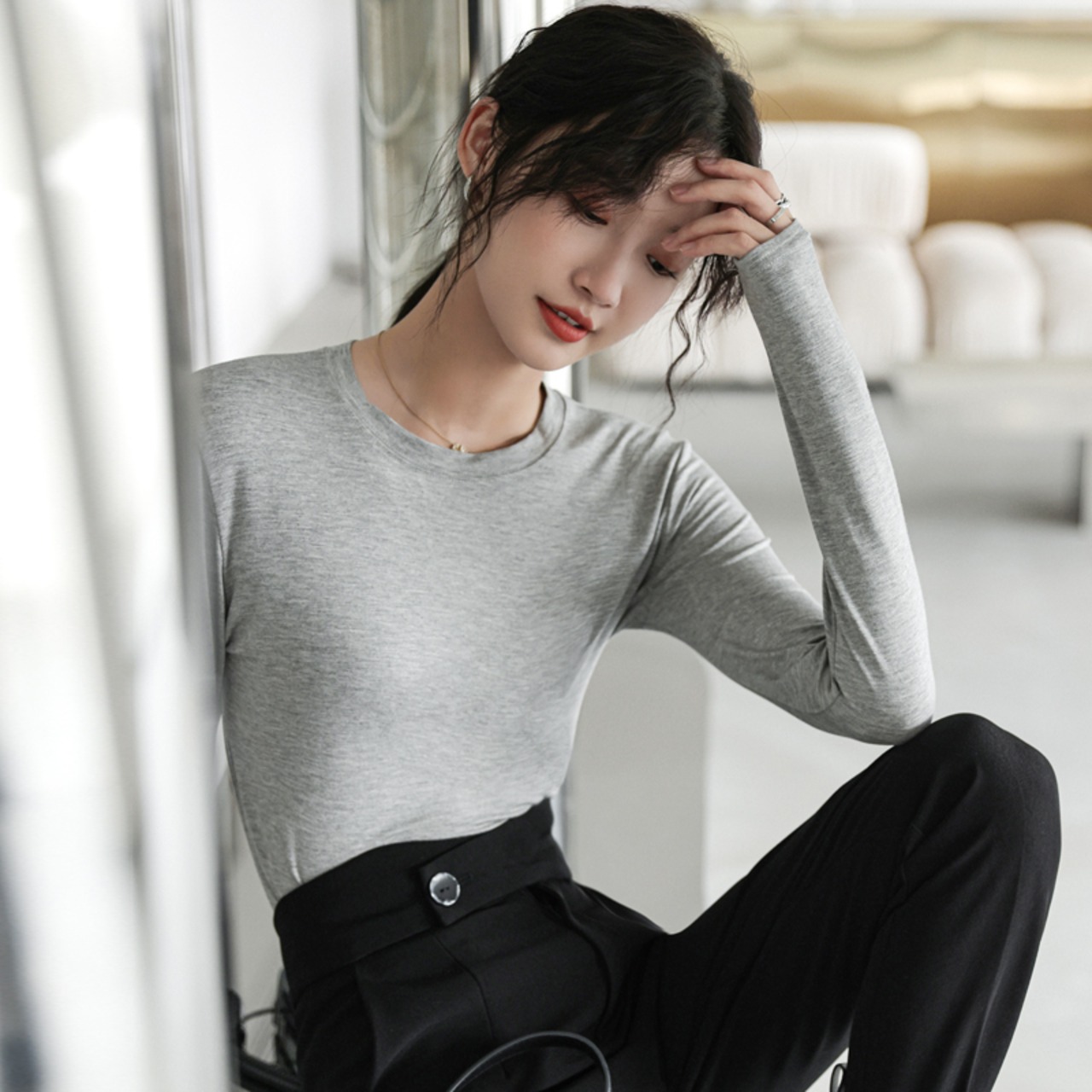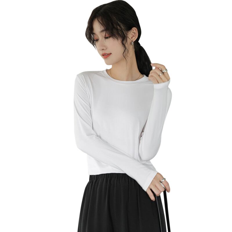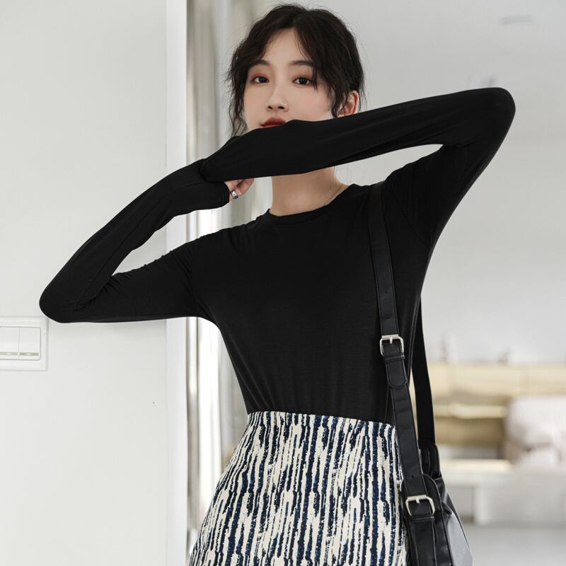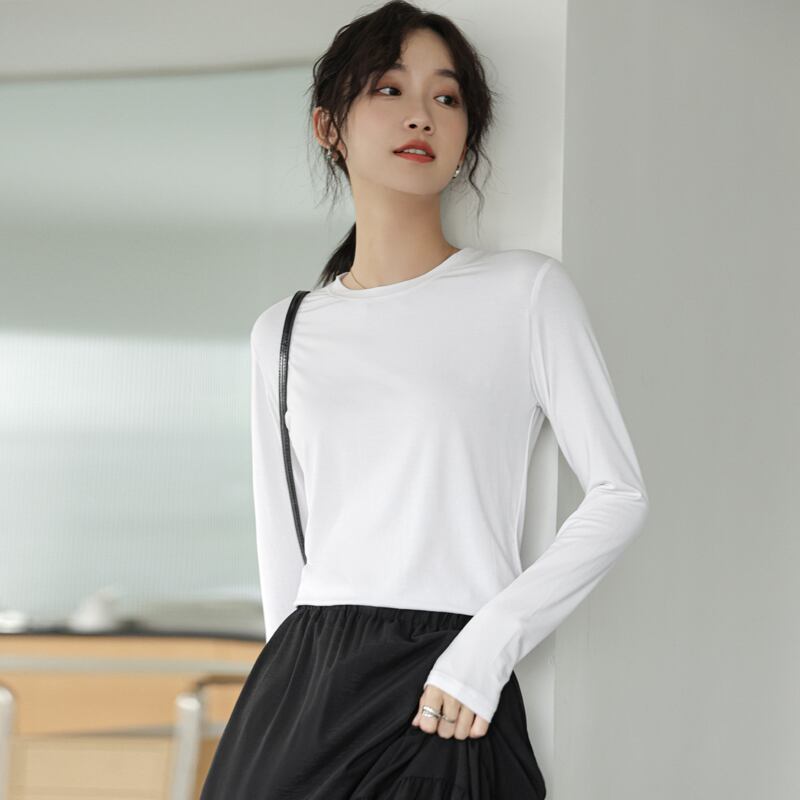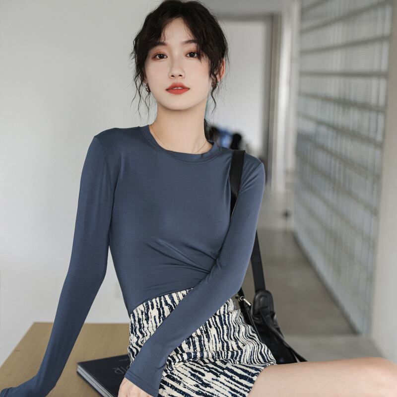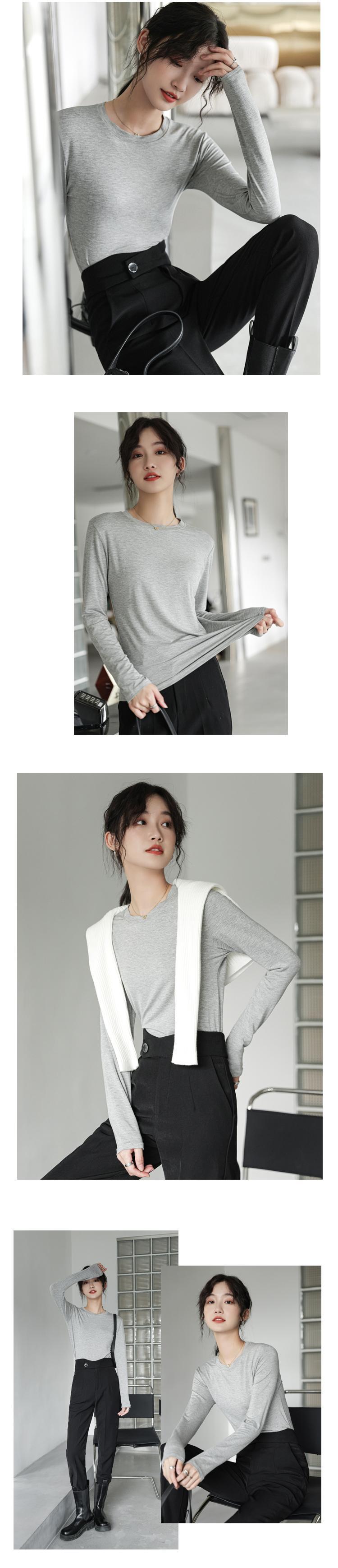 スプリングゆったりシャツ スタイルソリッド カラーラウンドネックスリムTシャツトップス ロング 春物 Oネック ソリッドカラー 長袖 GroundMODE264860488965 | pleglad Ground