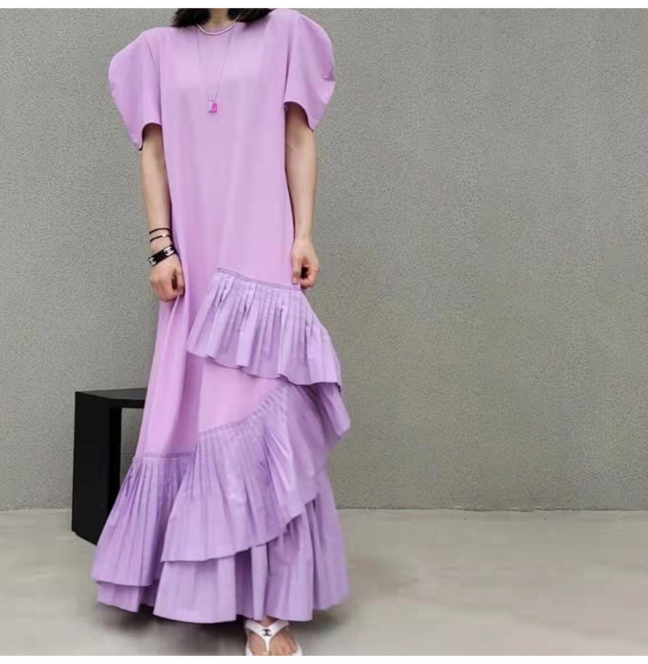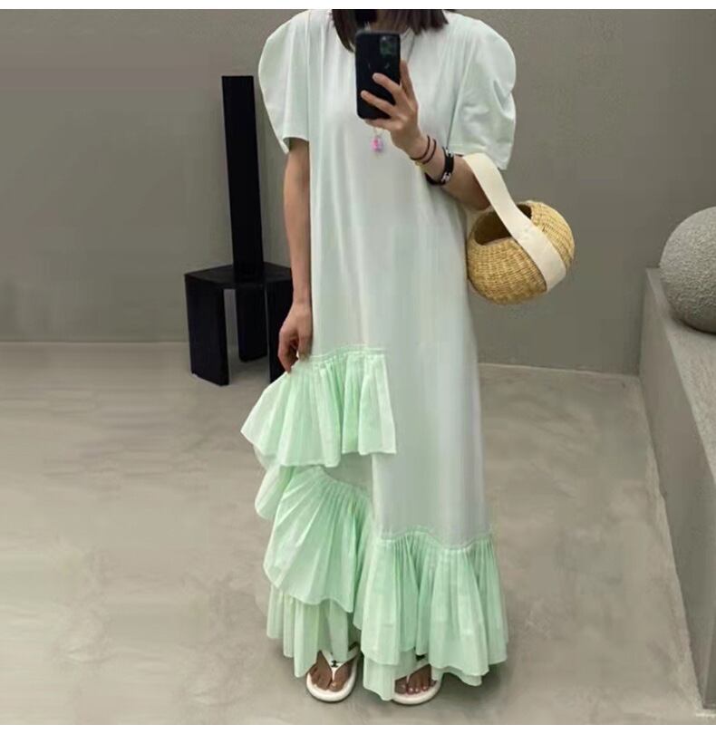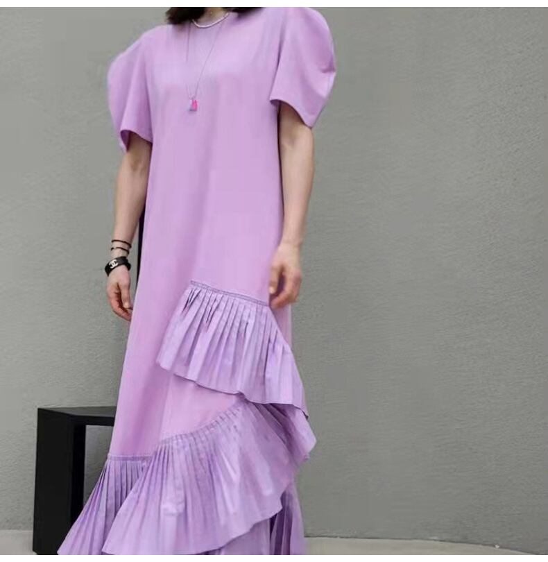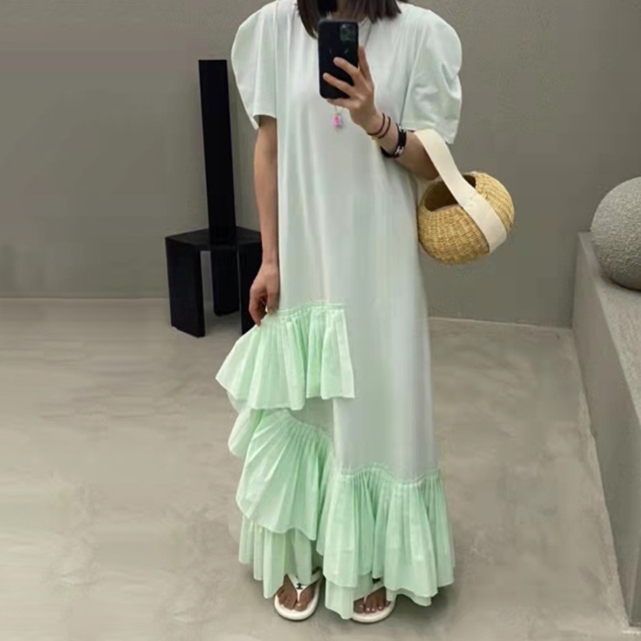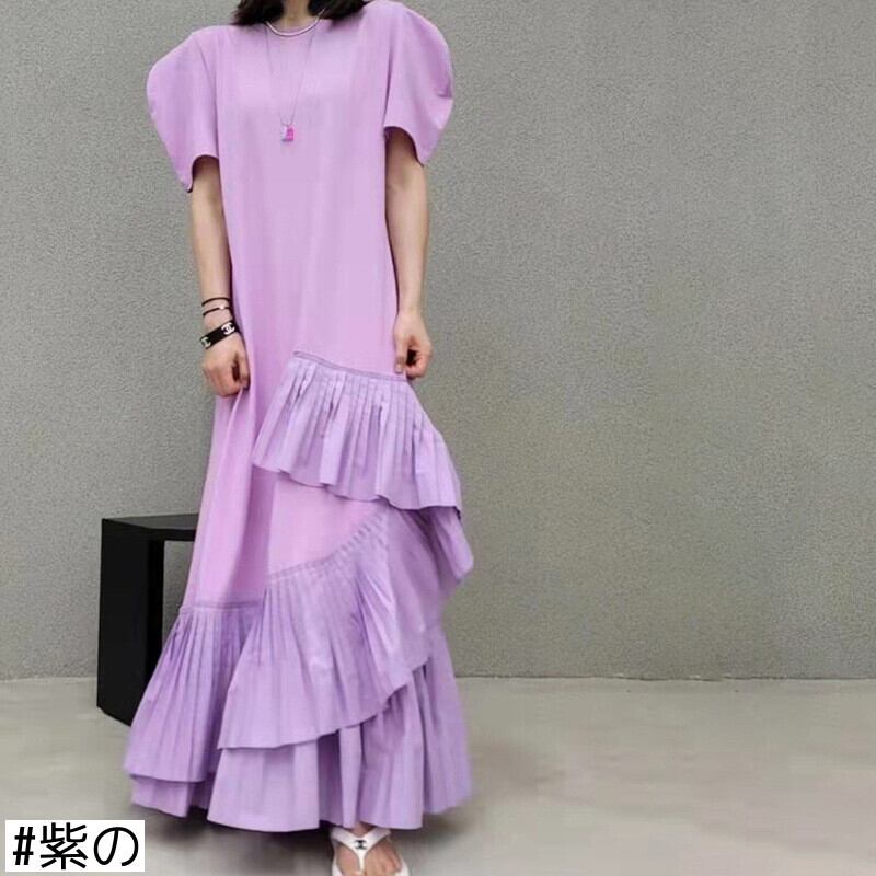 ソリッド カラーワンピース韓国ファッションスプリング夏服薄手スカート プリーツロング 春物 夏物 ソリッドカラー スタイル GroundMODE99685396438 | pleglad Ground