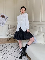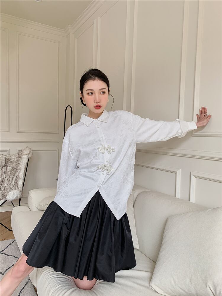 スタイルホワイトジャカードシャツ スプリングトップス ロング 大人ガーリー スウィート キュート カジュアル 春物 長袖 GroundMODE210163730475 | pleglad Ground
