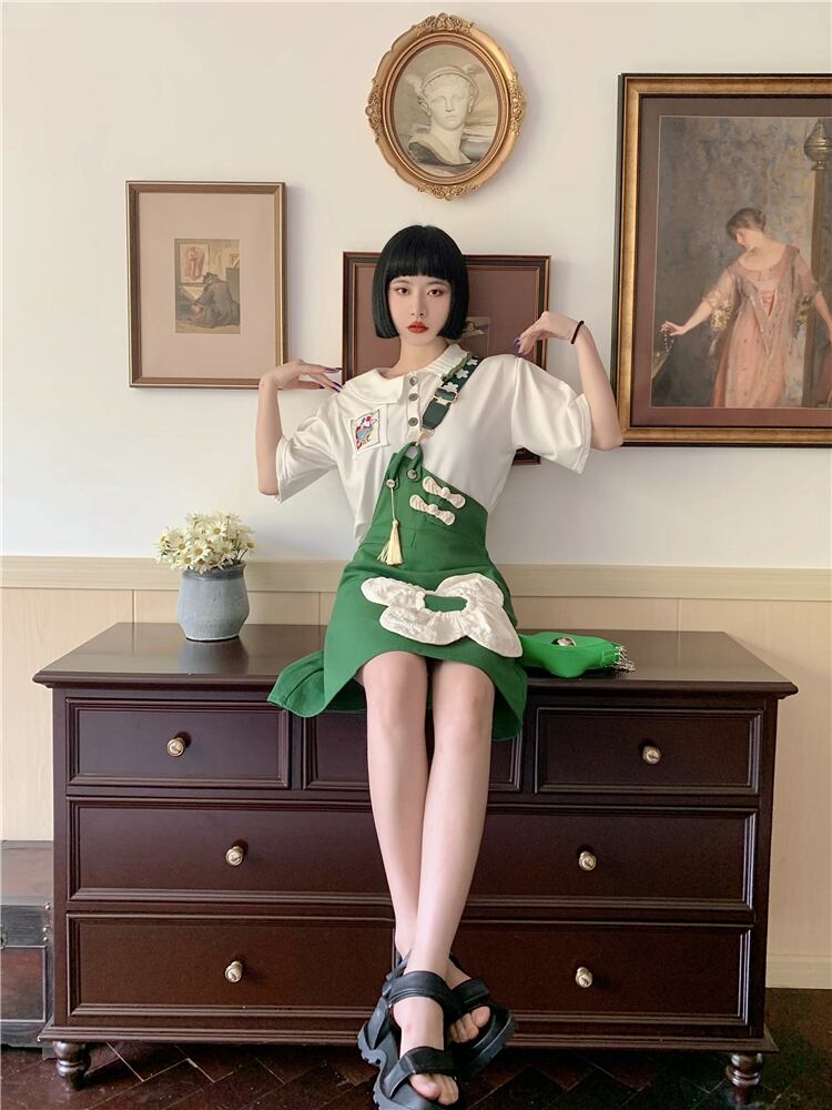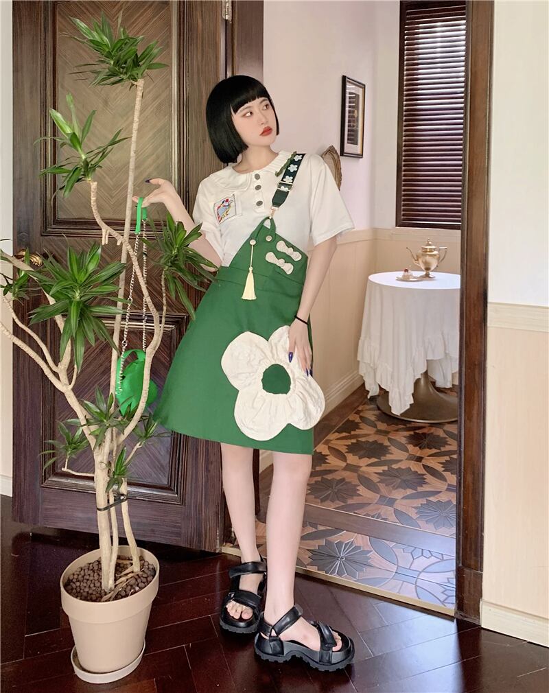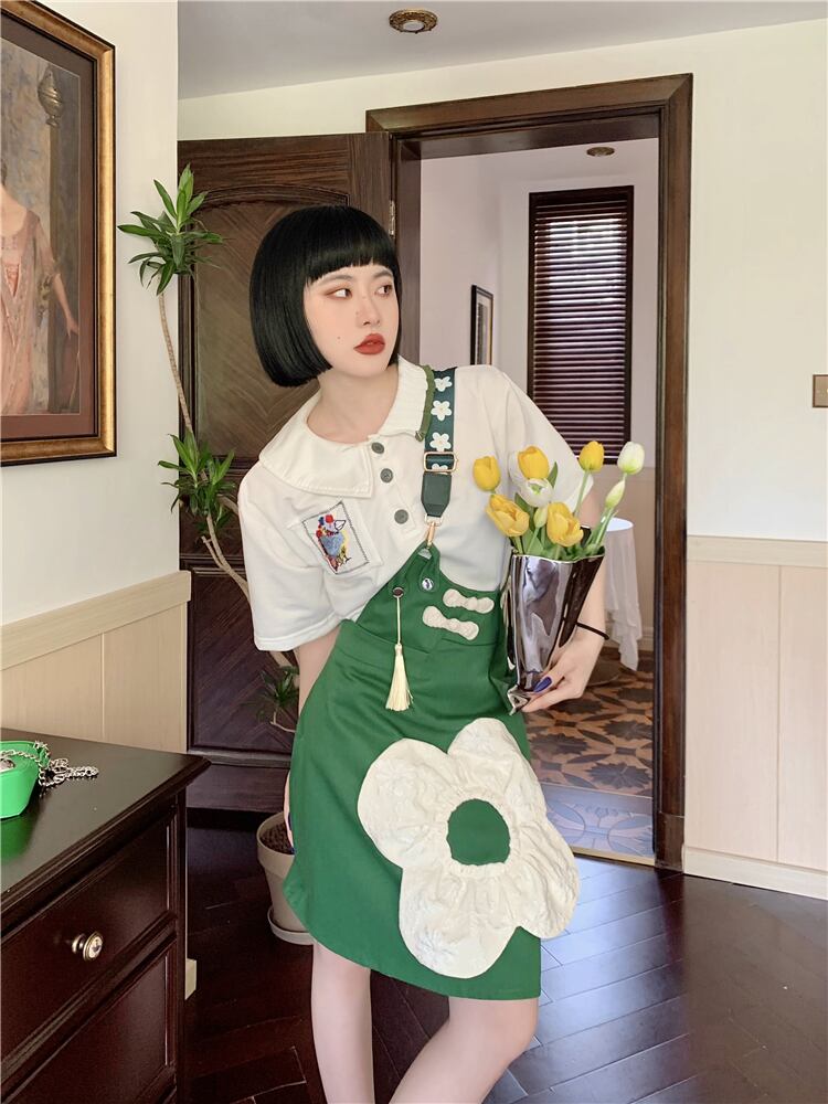 韓国ファッションスリーブカラーリボンシャツ Flowerデザイン ワンピース 大人ガーリー スウィート キュート カジュアル フラワーデザイン スクウェア GroundMODE249713408403 | pleglad Ground
