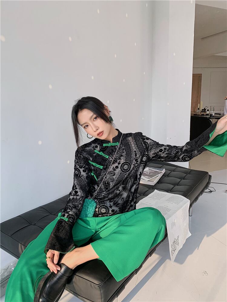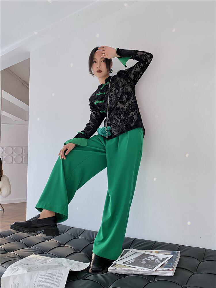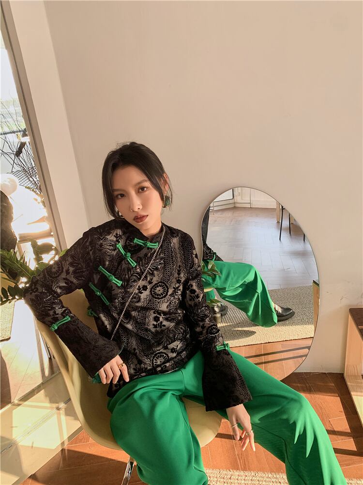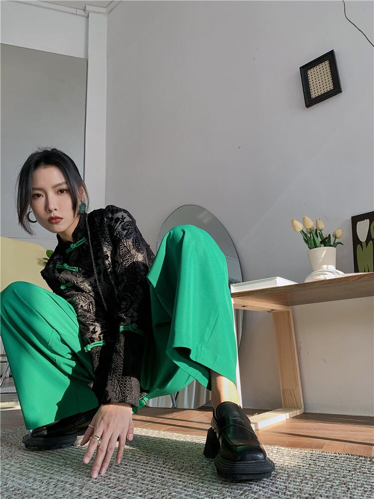 色:ブラックトップ,グリーンパンツ