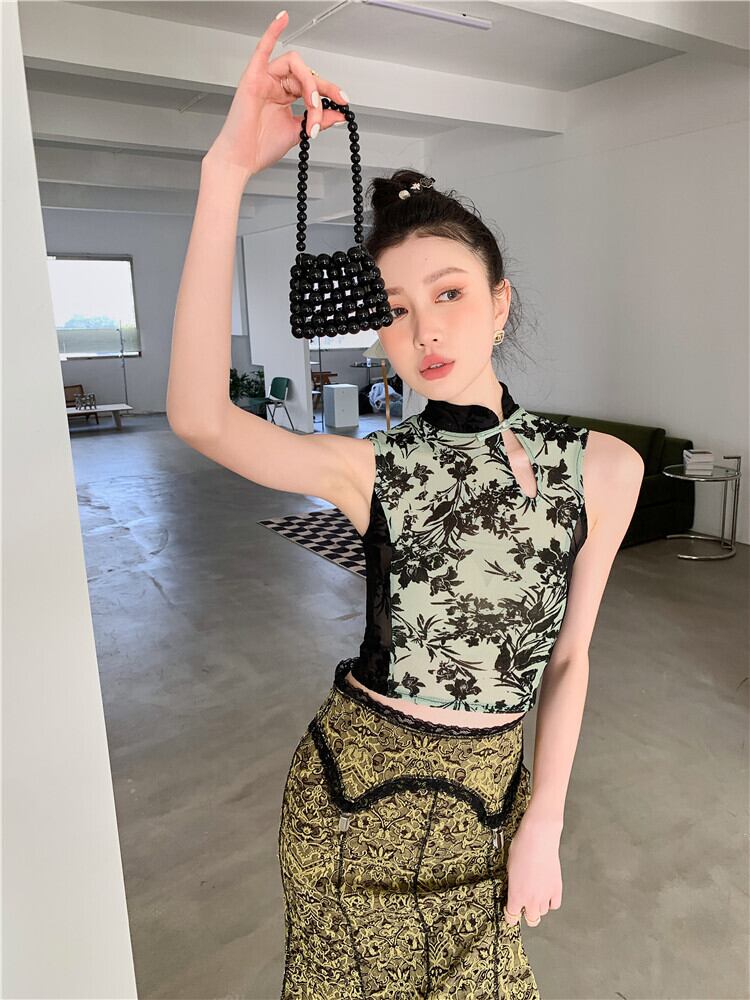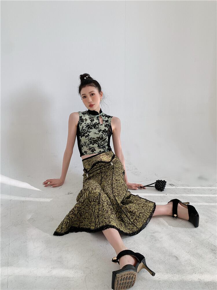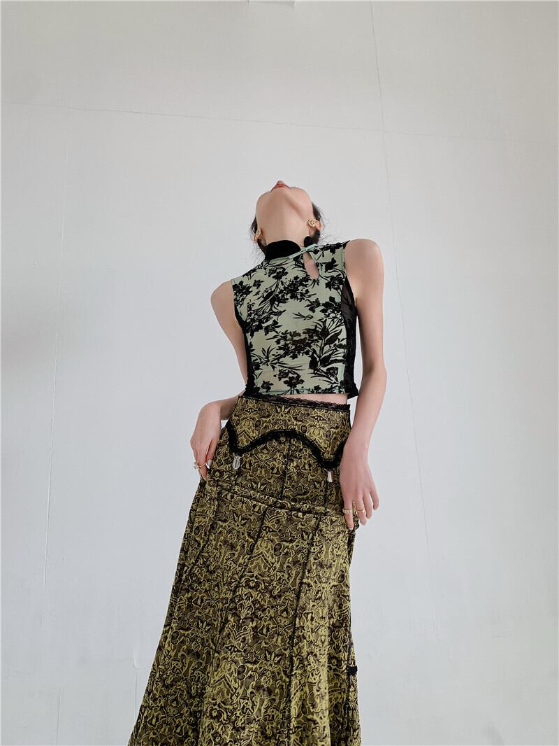 色:カラースカート,ストレッチメッシュフロックトップ
