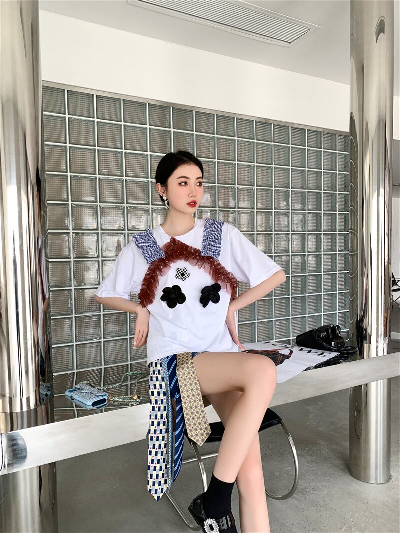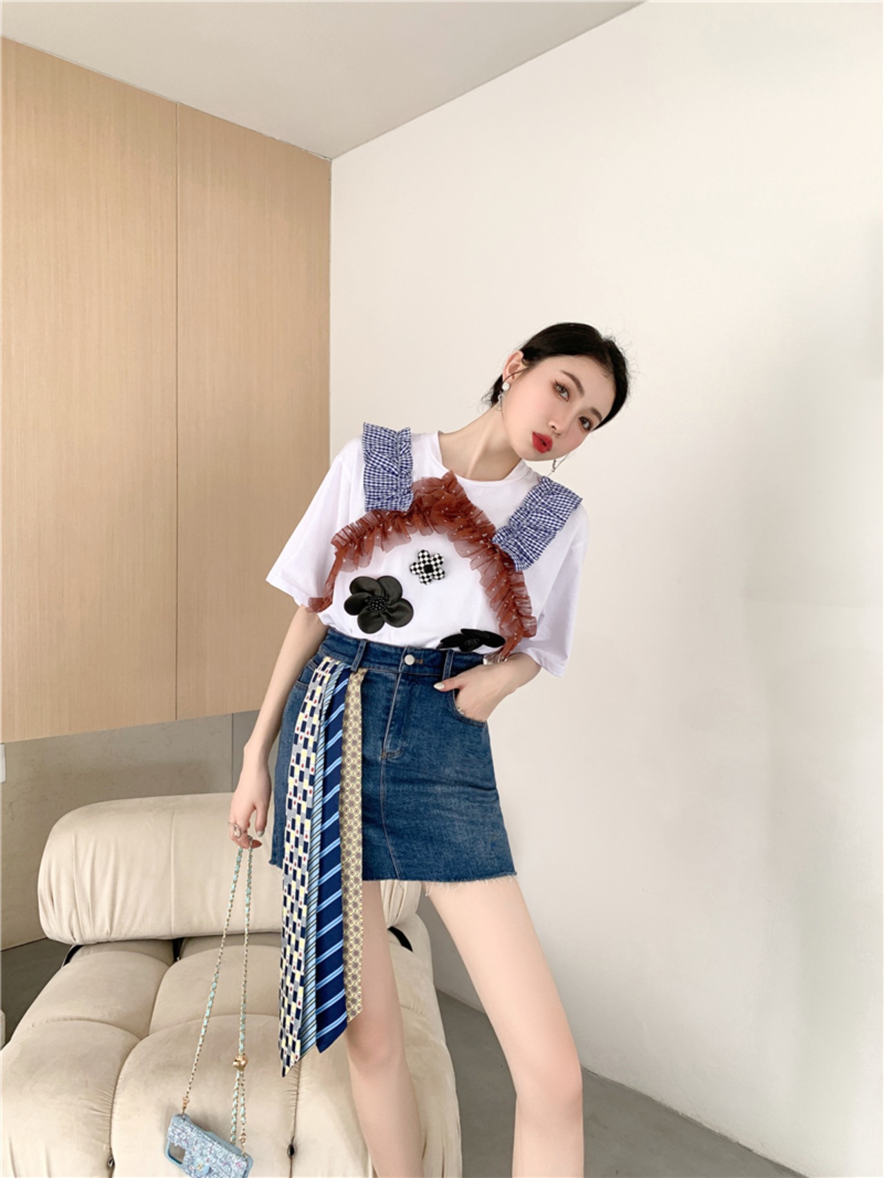 色:ホワイトトップ,デニムスカート