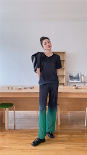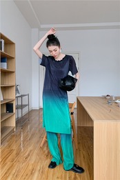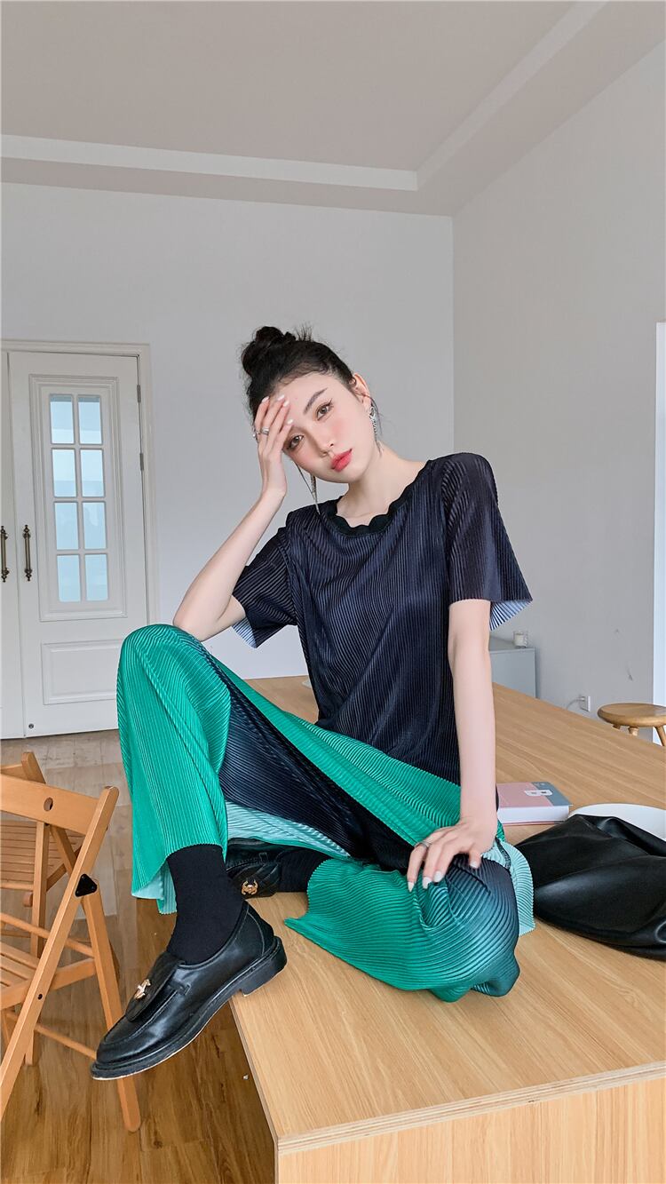 色:黒から緑のミドル丈スカート,黒と白のミドル丈スカート,黒と緑のカジュアルパンツ,黒と白のカジュアルパンツ