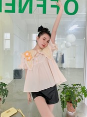 Flowerデザイン カラーシャツ 夏服トップス 大人ガーリー スウィート キュート カジュアル 夏物 フラワーデザイン GroundMODE283594000440 | pleglad Ground