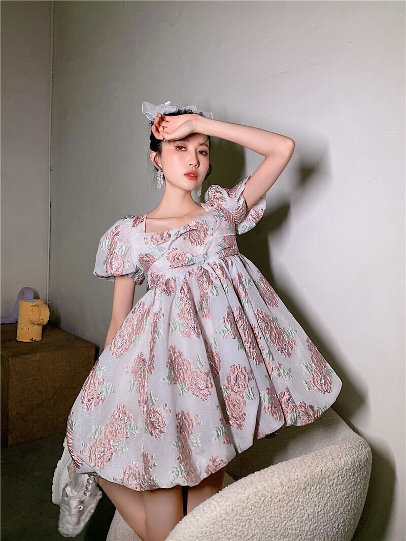 ワンピース夏服ウェストスリーブFlowerデザイン ジャカードスカート 大人ガーリー スウィート キュート カジュアル 夏物 パニエ ペチコート フラワーデザイン ウエスト GroundMODE25205603645 | pleglad Ground