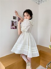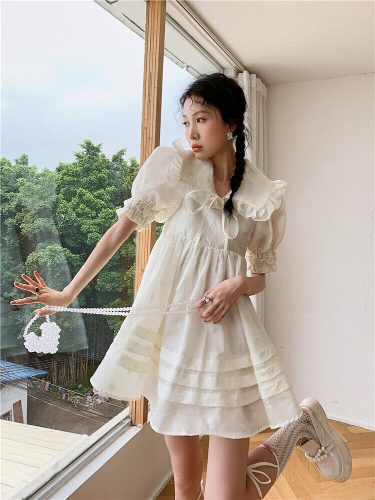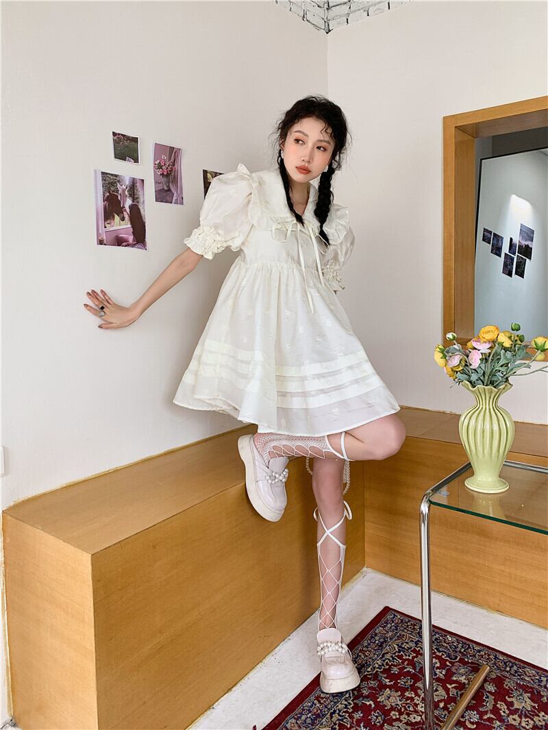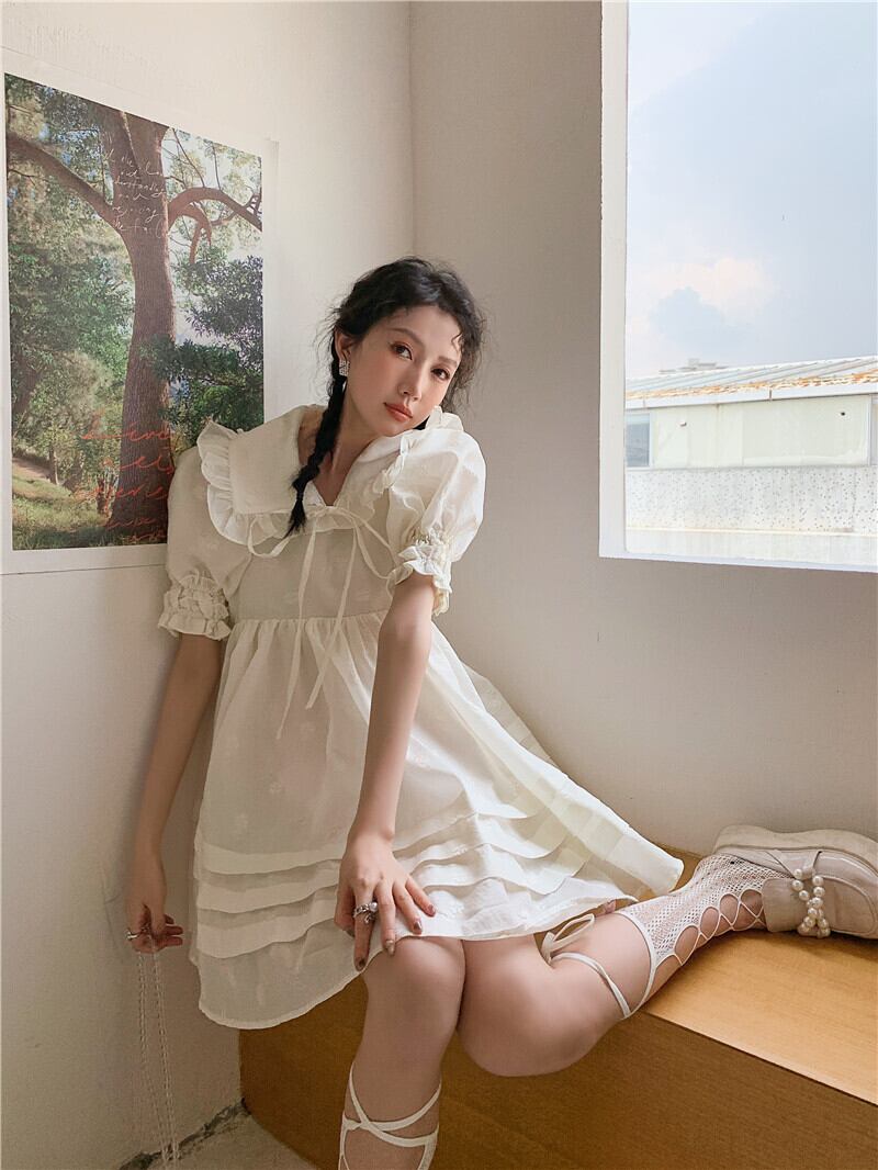 プリーツカラースカート 半袖スリーブハイウェストウェストワンピース ショート ハーフスリーブ 大人ガーリー スウィート キュート カジュアル ウエスト GroundMODE275159218690 | pleglad Ground