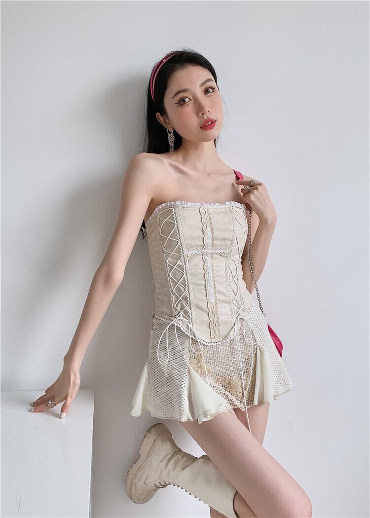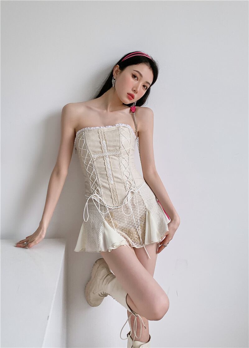 色:オフホワイトのショートスカート,胸パッド付きトップ