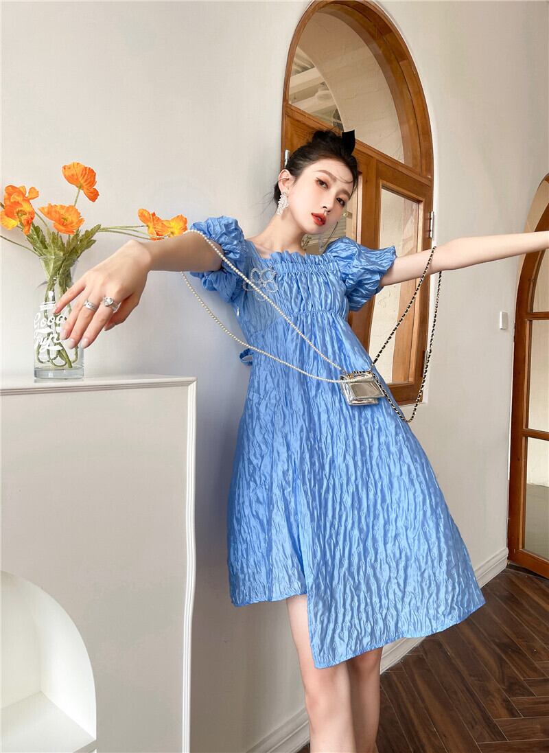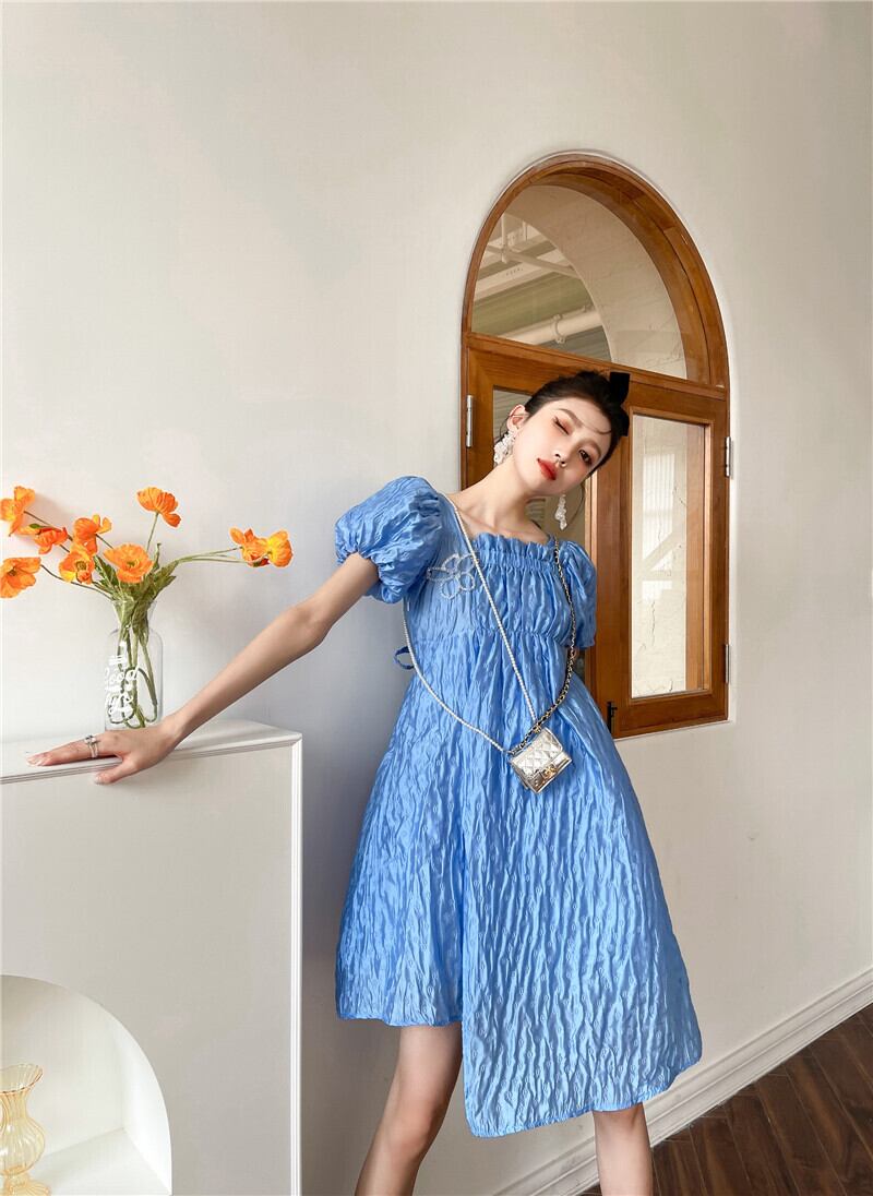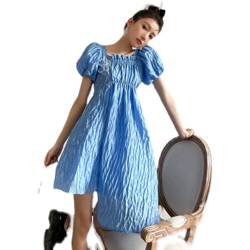 ブルーFlowerデザイン ジャカードスリーブワンピース 大人ガーリー スウィート キュート カジュアル フラワーデザイン GroundMODE230712324710 | pleglad Ground