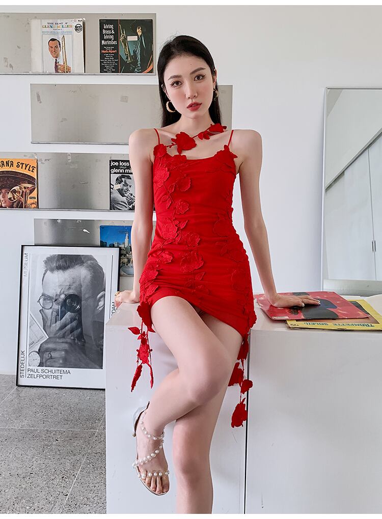 スプリング夏服レッドFlowerデザイン ワンピース 大人ガーリー スウィート キュート カジュアル 春物 夏物 フラワーデザイン GroundMODE239276017059 | pleglad Ground