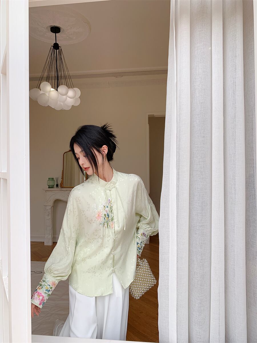 シャツ レディースジャカードスタンダードスタイルトップス レッド レトロ 刺繍 GroundMODE270535185966