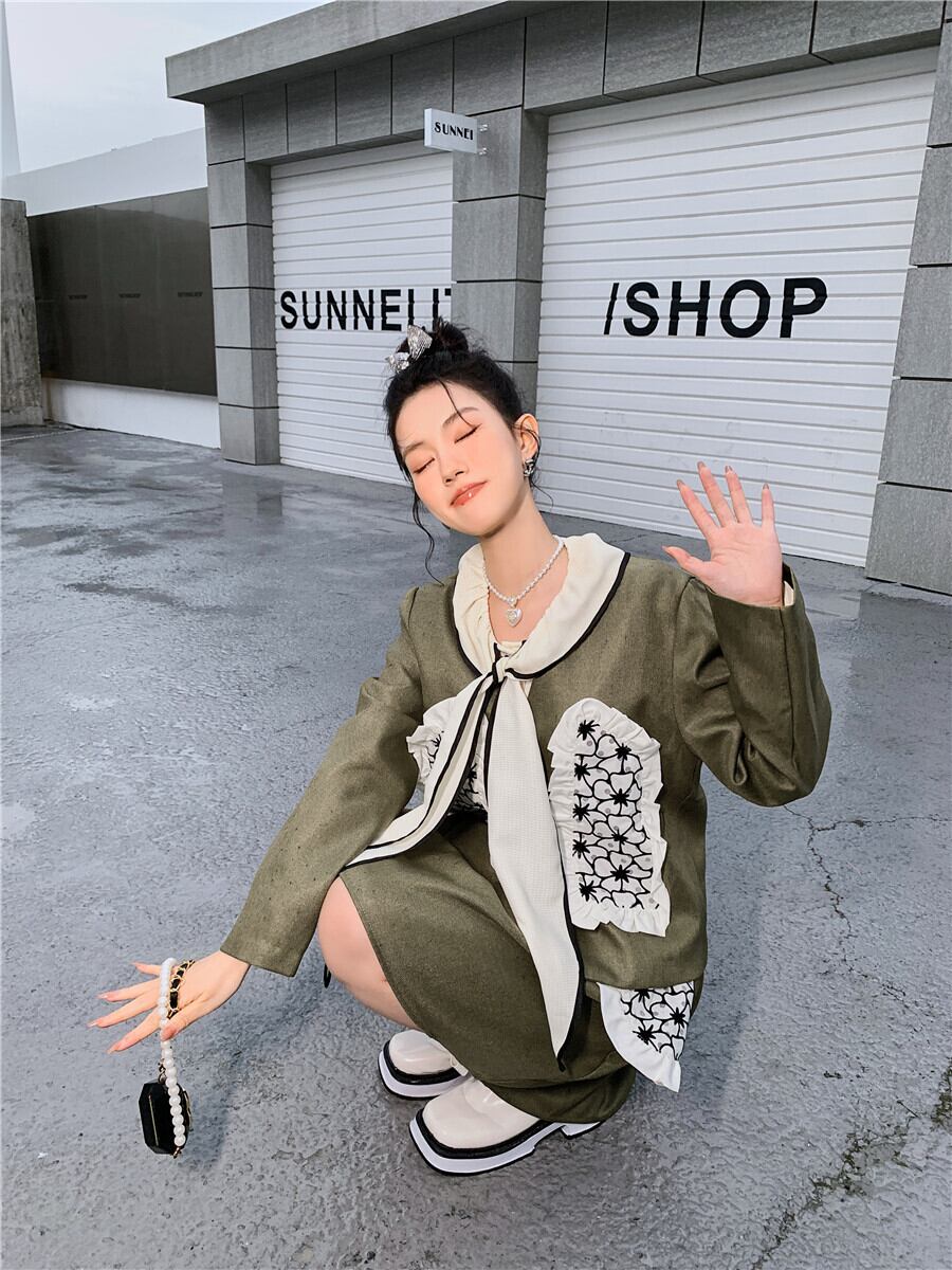 色:きゅうりのピクルスグリーンコート,ピクルスグリーンのスカート