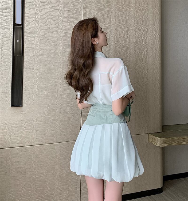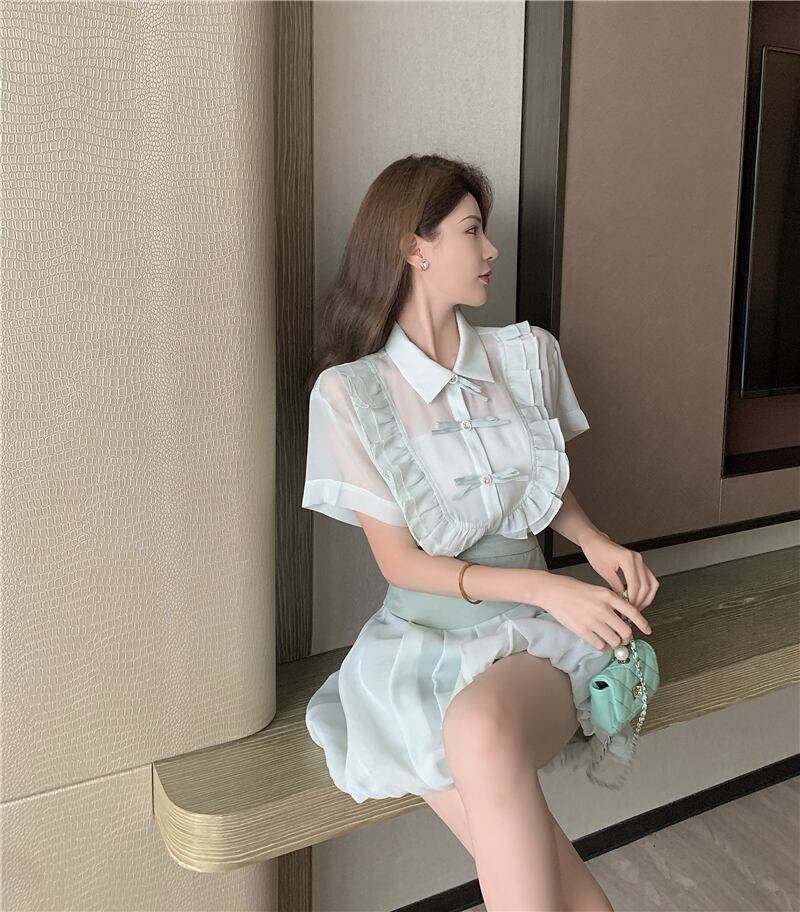 色:ライトグリーントップ,クリームあんずトップ,ライトグリーンのスカート,クリームアプリコットスカート