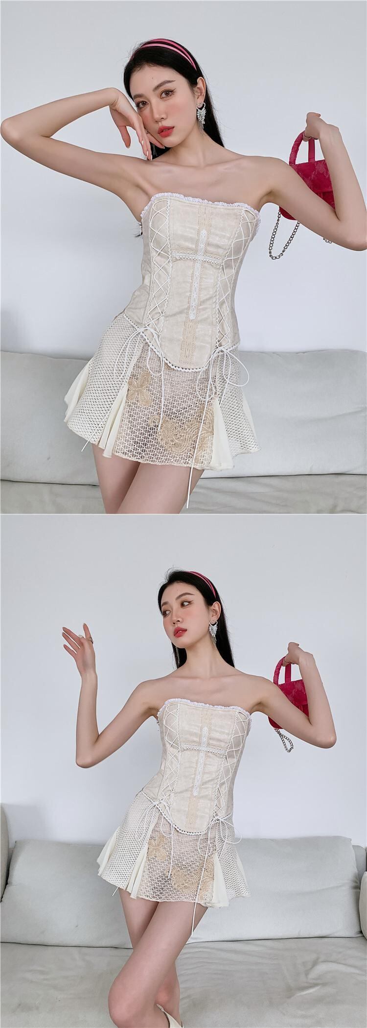 色:オフホワイトのチューブトップ,オフホワイトのショートスカート