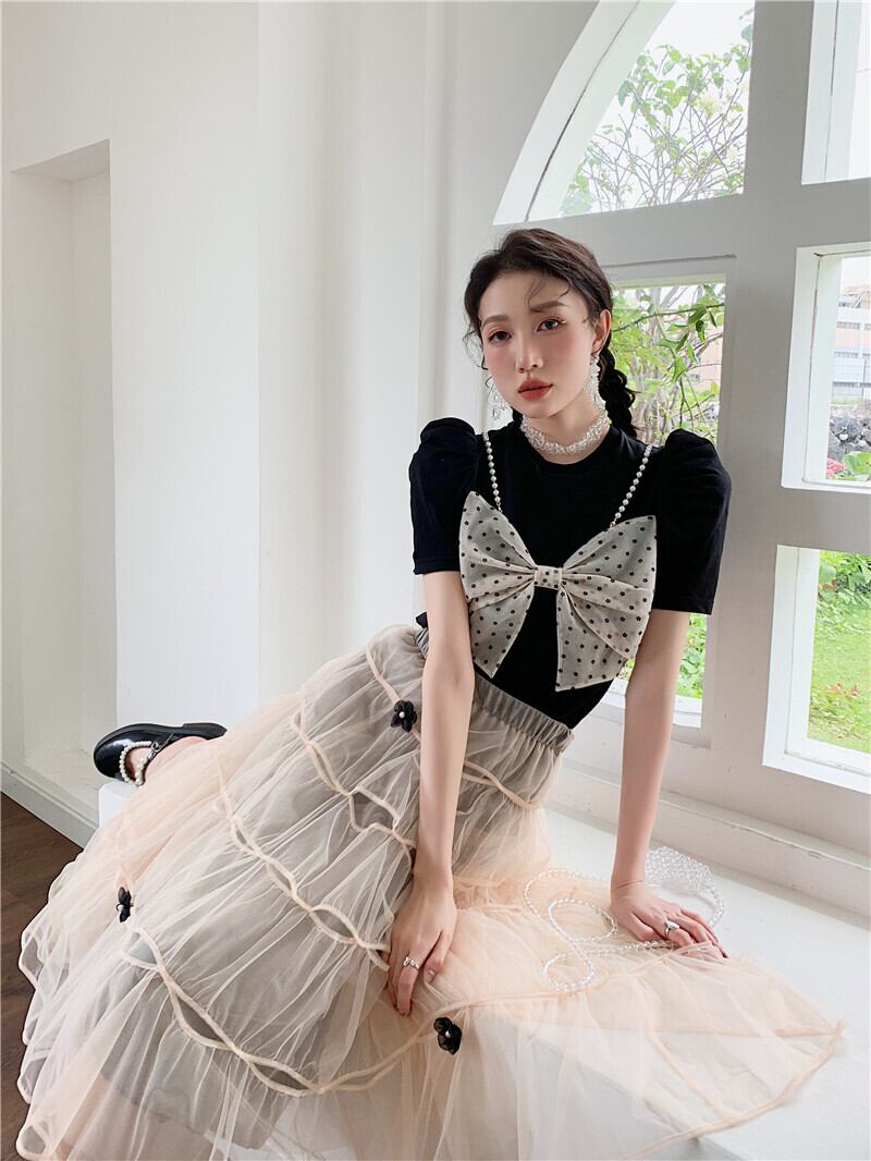 色:ブラックトップ,オフホワイトのスカート