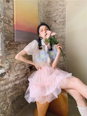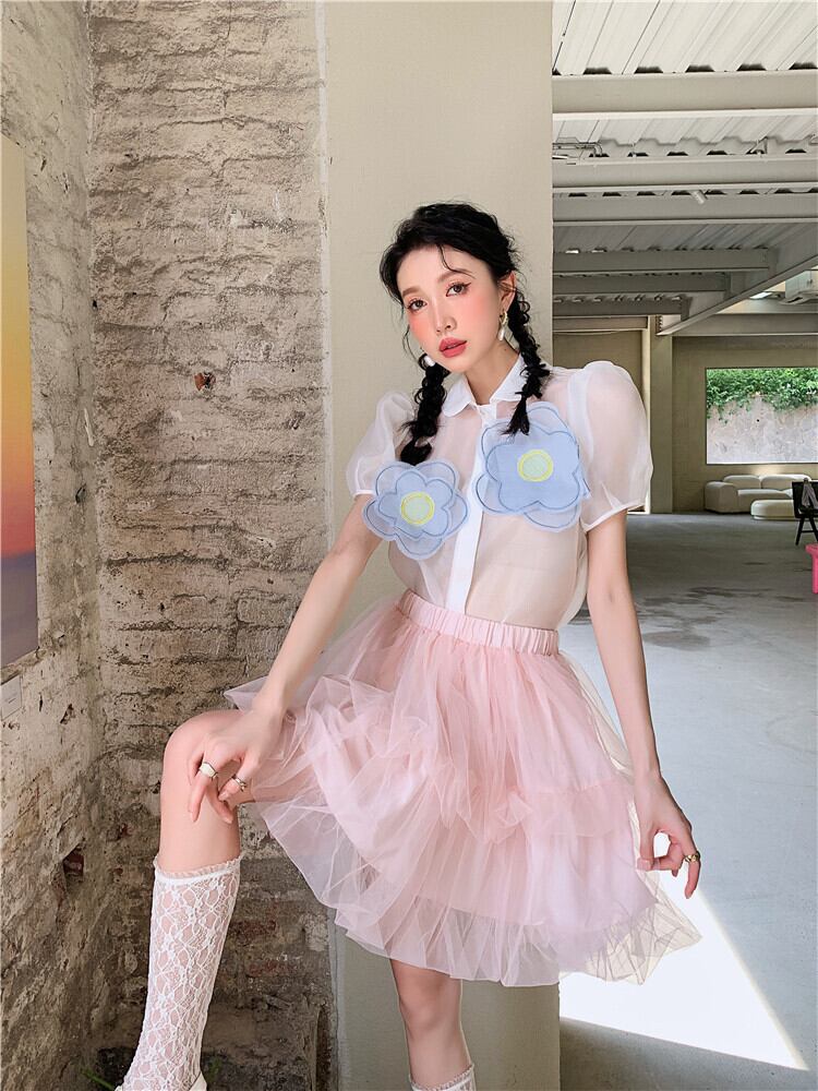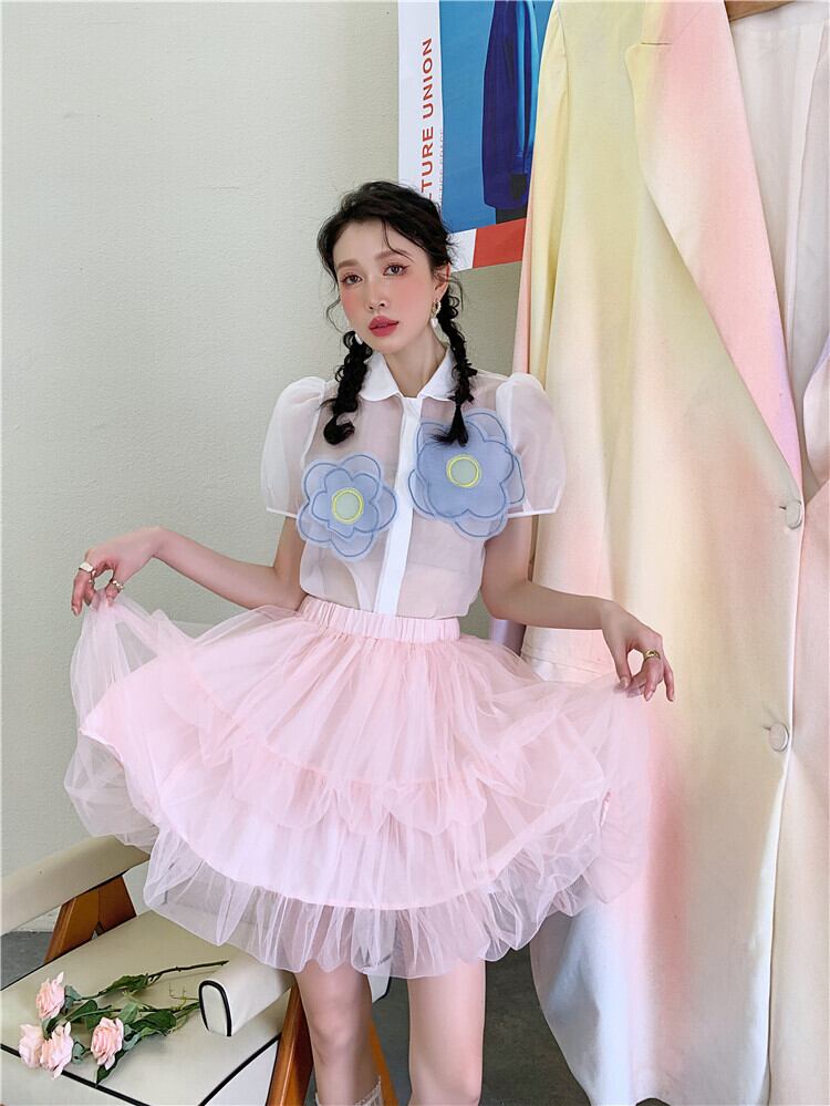 色:ネットヤーンベビーシャツ,ピンクのハーフスカートフリーサイズ
