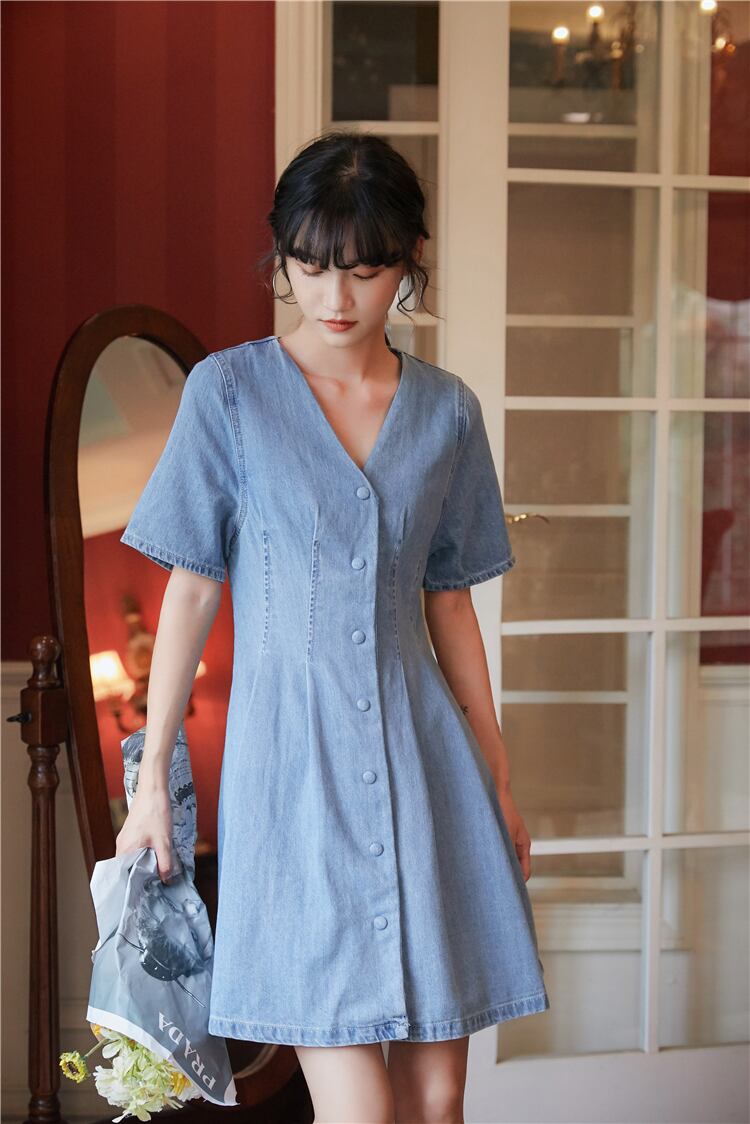スタンダードVネックプリーツウェストワンピース夏服カジュアル レトロ 大人ガーリー スウィート キュート 夏物 ウエスト GroundMODE270204215879 | pleglad Ground