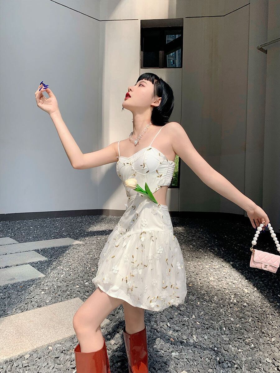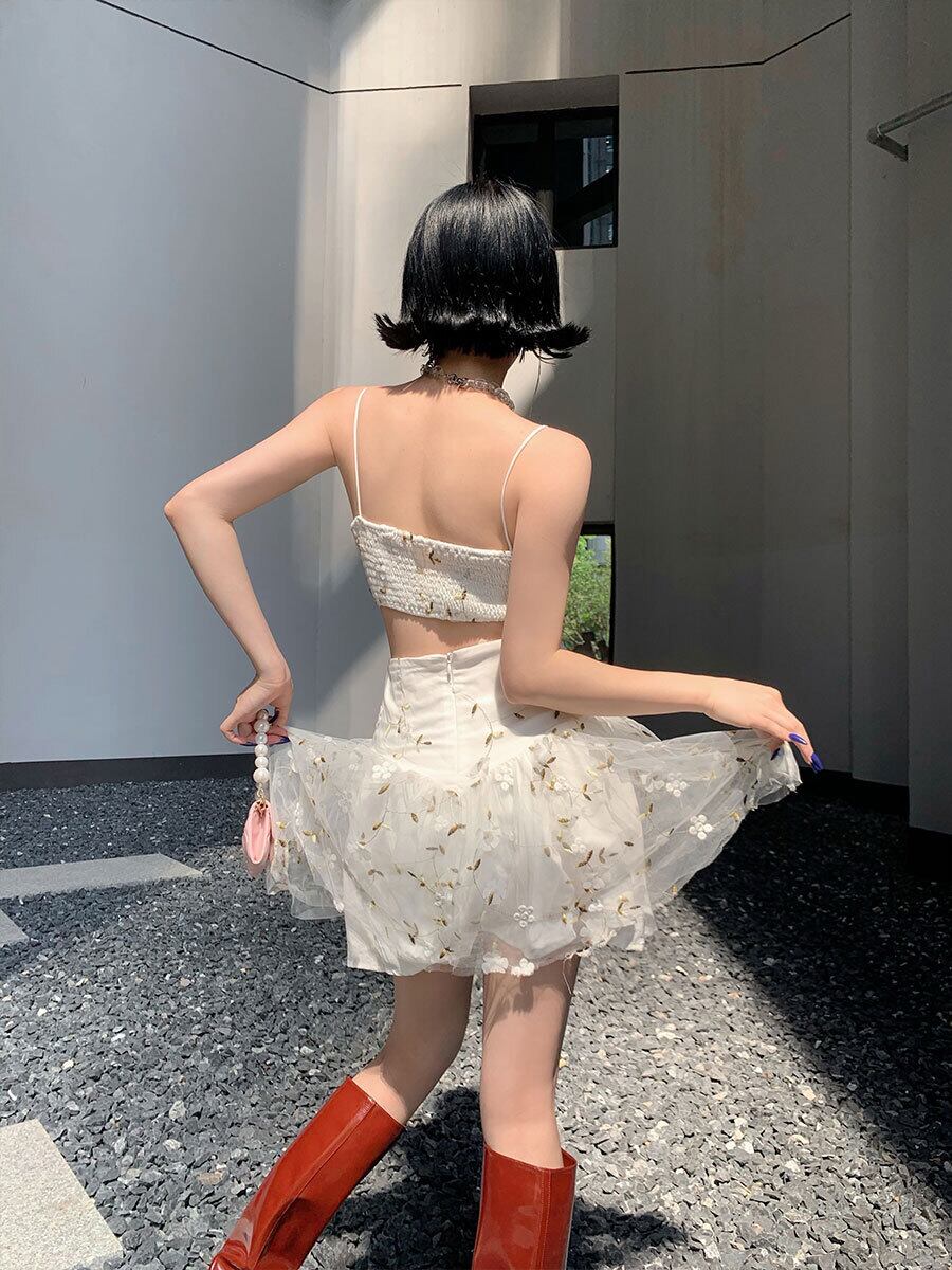 ウェストFlowerデザイン ワンピーストップス フローラルショートスカート レディース 花柄 フラワーデザイン ウエスト GroundMODE248766709413 | pleglad Ground