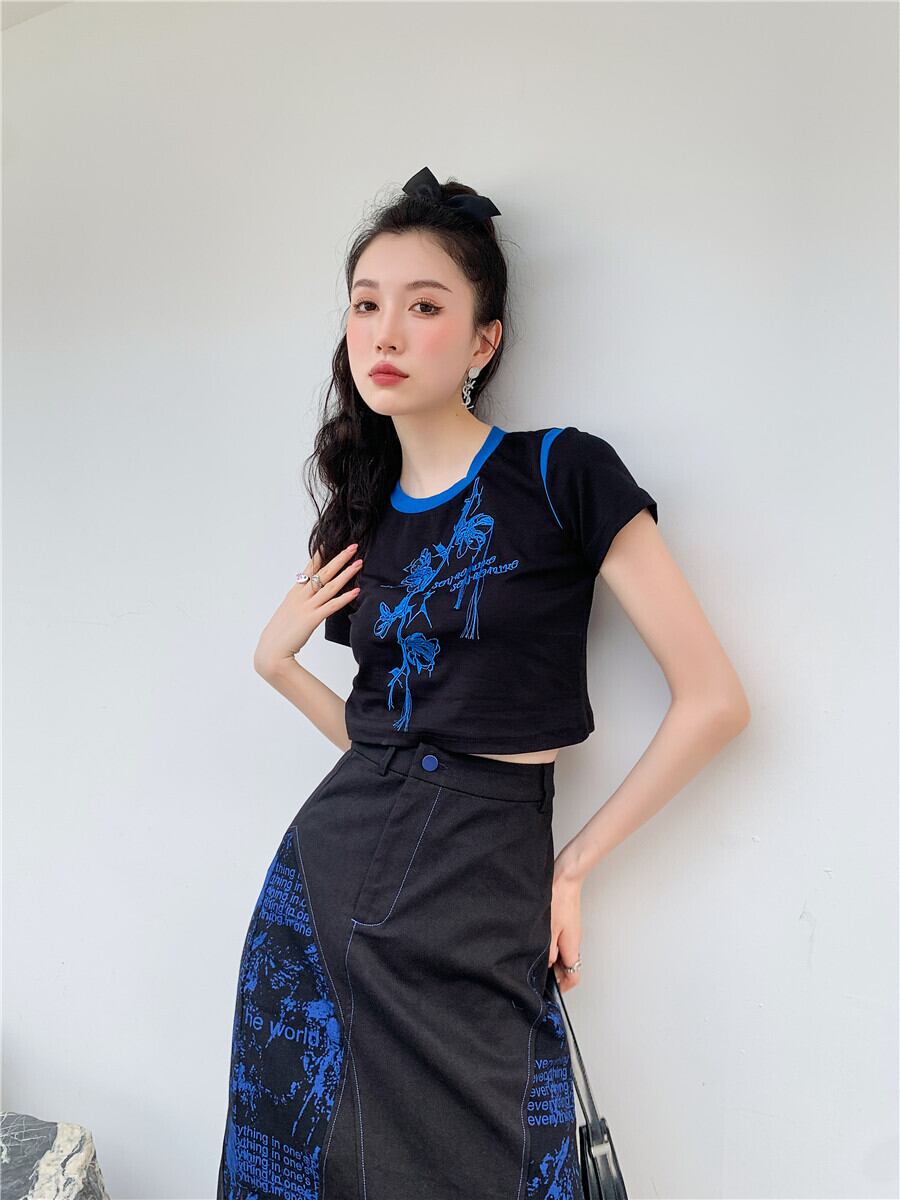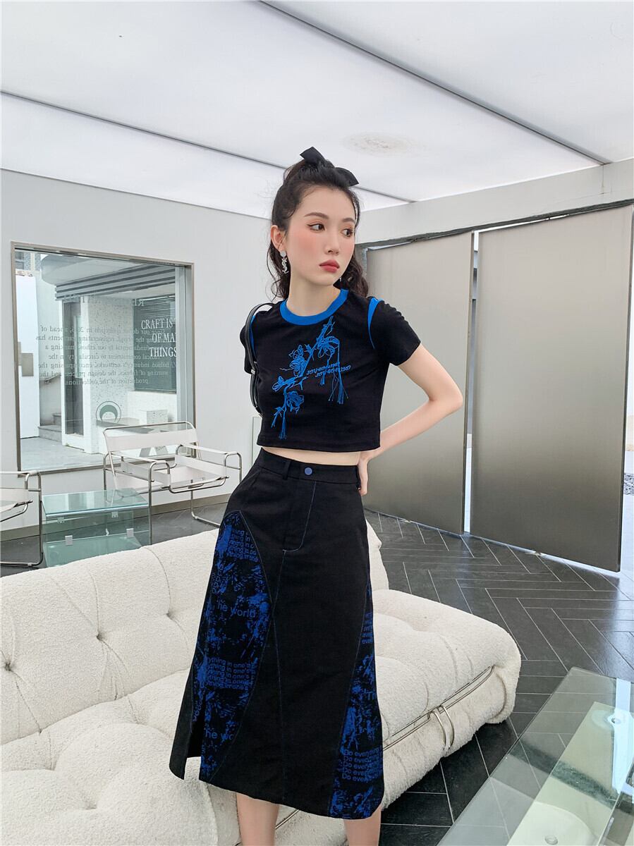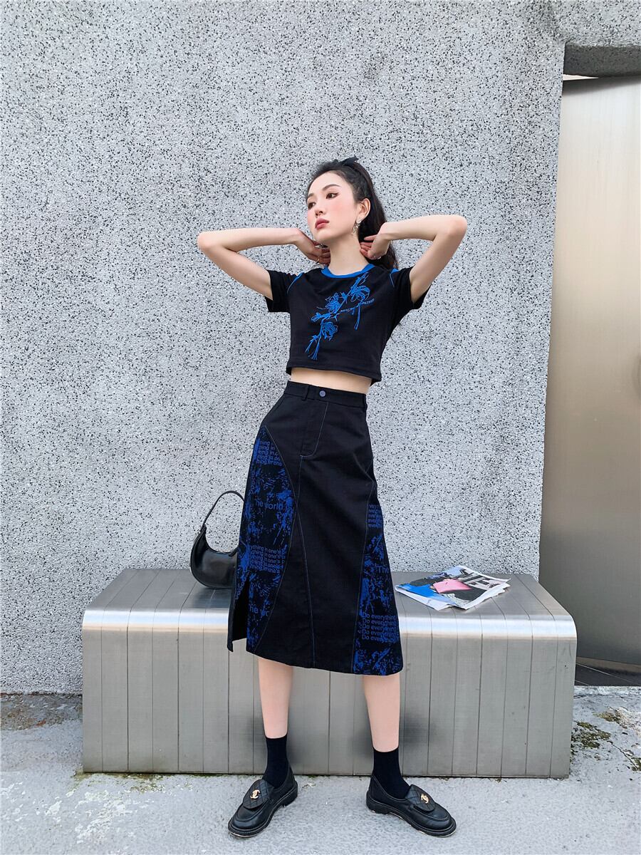 色:ブラックブルーのスカート,コート