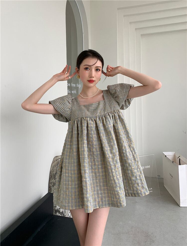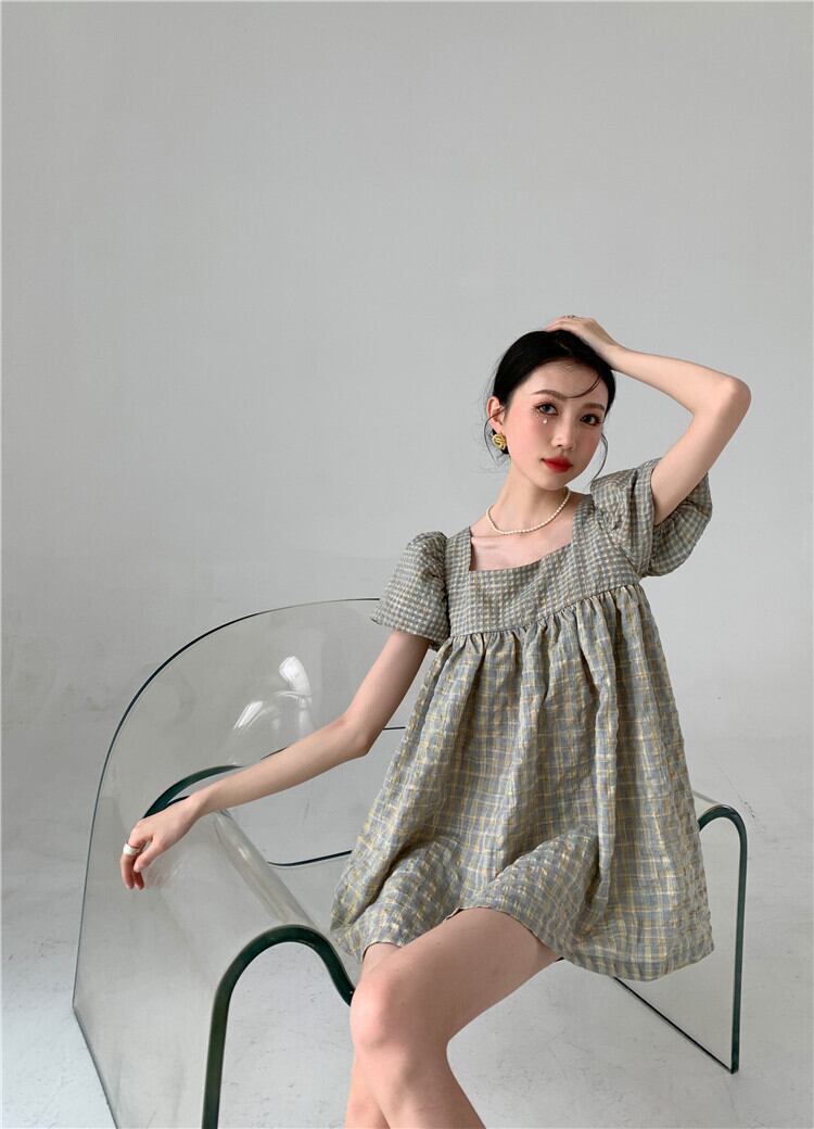 色:グースイエロー/ライトグレーサイズのチェック柄スポット