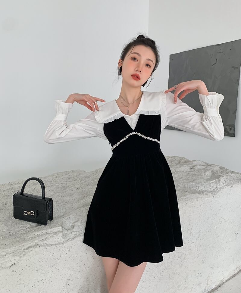 色:黒いドレス,白のシャツ