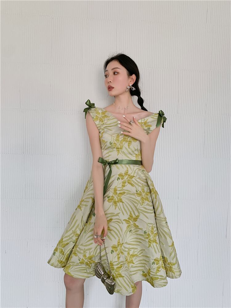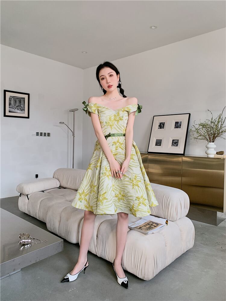 スタンダードFlowerデザイン ホワイトジャカードサテンワンピース レトロ オフショルダー フラワーデザイン ターコイズ GroundMODE213613076238 | pleglad Ground
