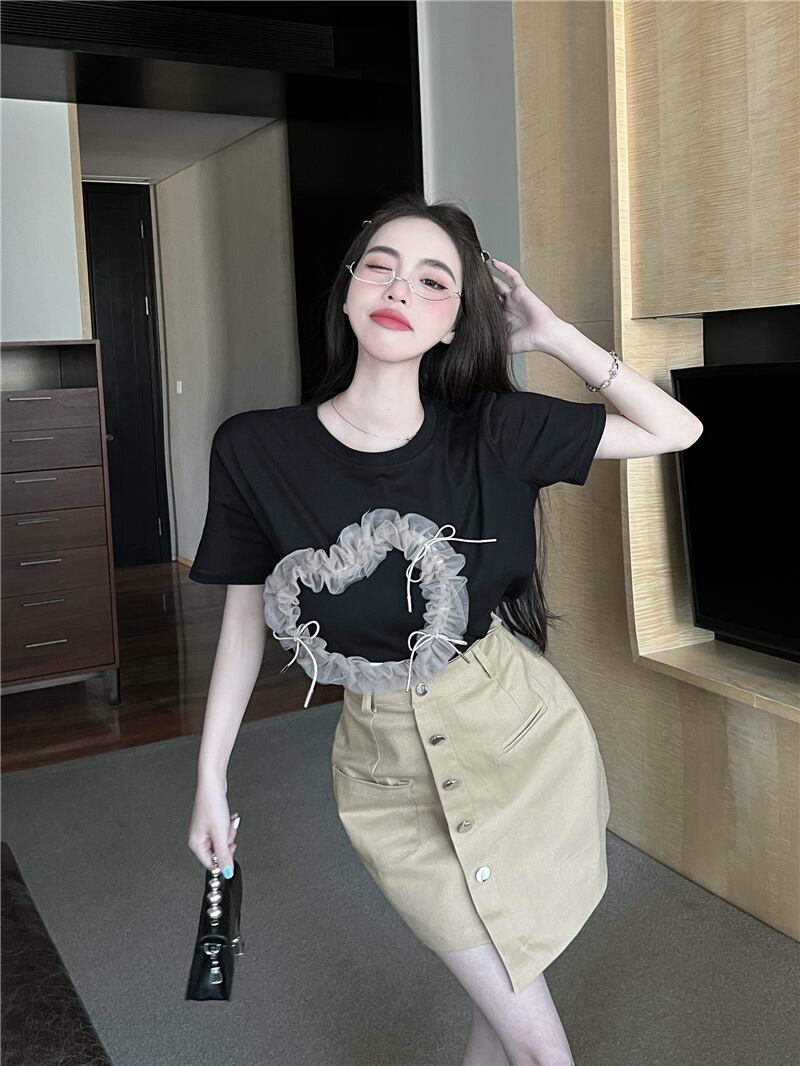 メッシュ半袖スリーブTシャツウェストAラインスカート ショート ハーフスリーブ 大人ガーリー スウィート キュート カジュアル ウエスト GroundMODE247519415858 | pleglad Ground