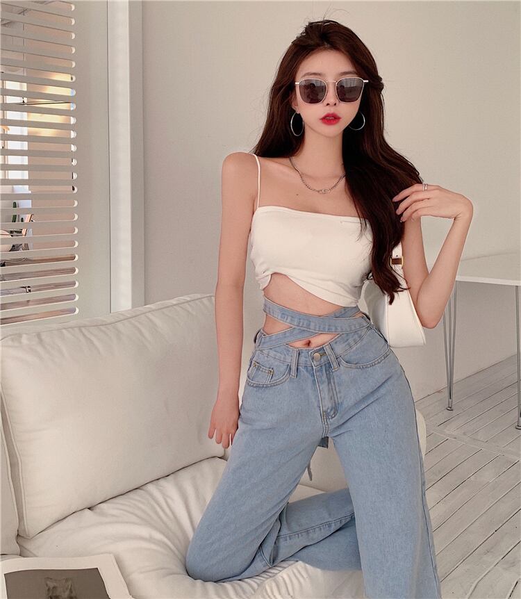 クロスハイウェストウェストワイドレッグパンツ レディーススリムスタンダードスタイルジーンズ レトロ ワイドパンツ ウエスト GroundMODE26859558485 | pleglad Ground