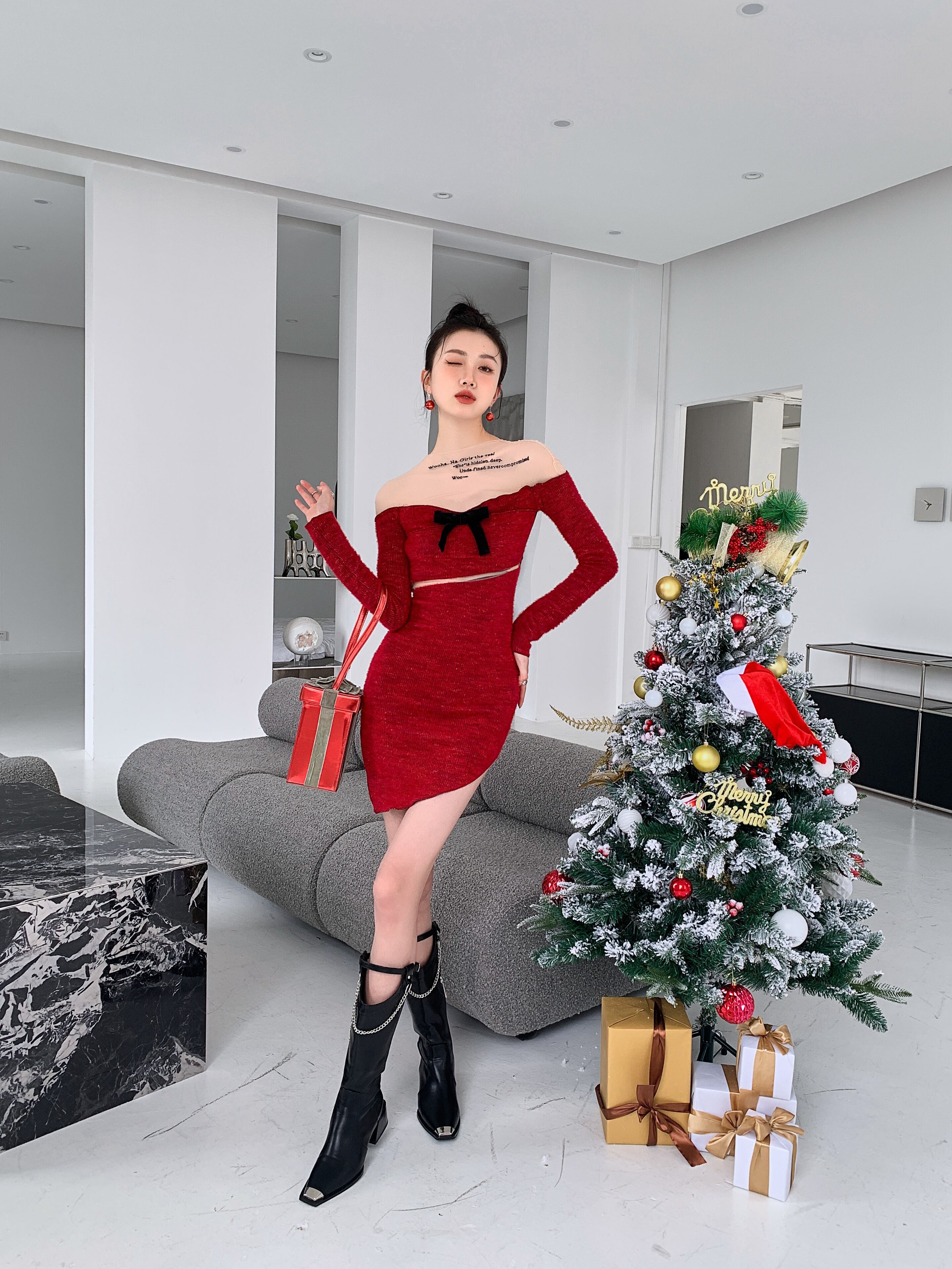 スプリングレッドセーター ワンピーススリムシャツ ニットレディース 大人ガーリー スウィート キュート カジュアル 春物 GroundMODE288513167031 | pleglad Ground