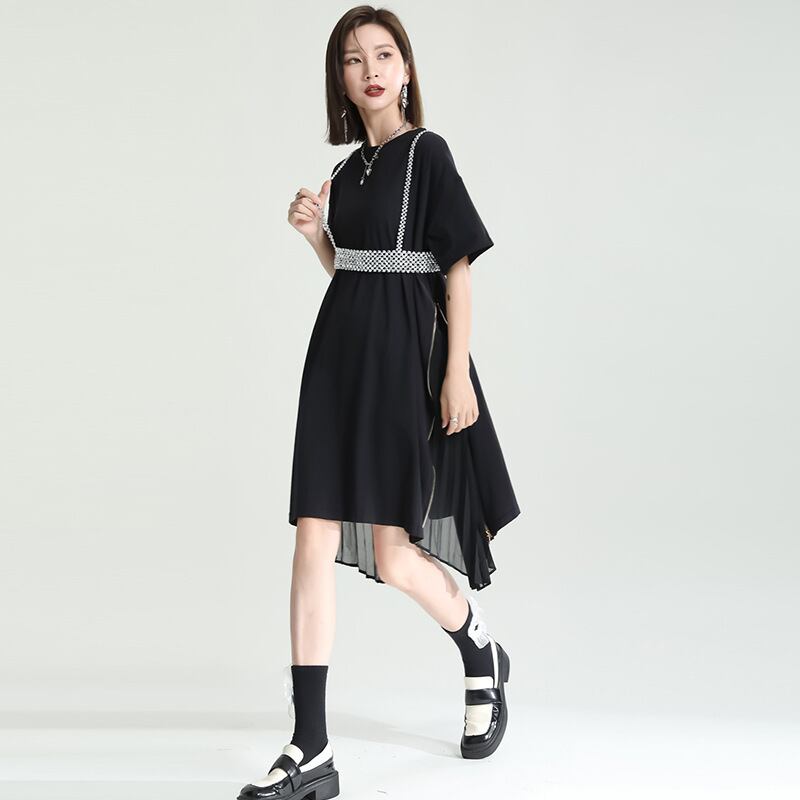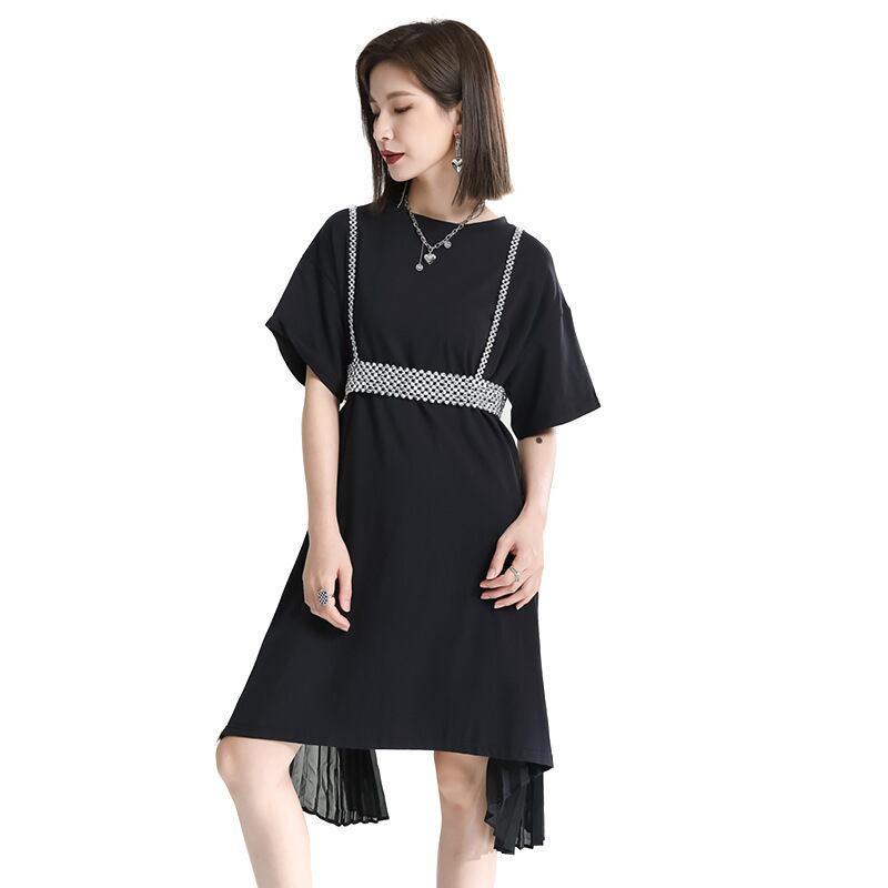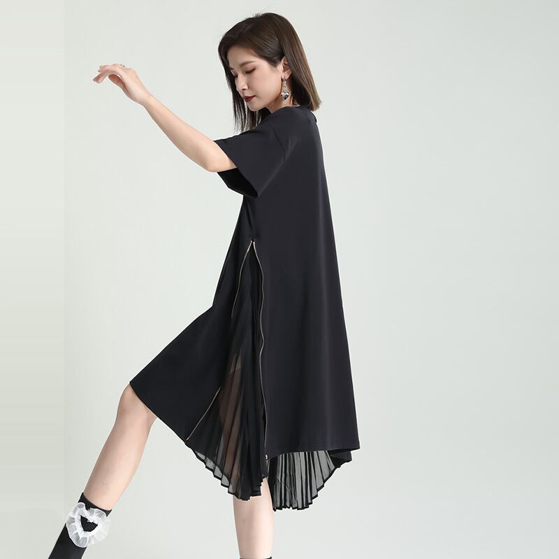 夏服サイドプリーツシフォンルーズワンピーススカート 夏物 ミドル丈 GroundMODE313850765682